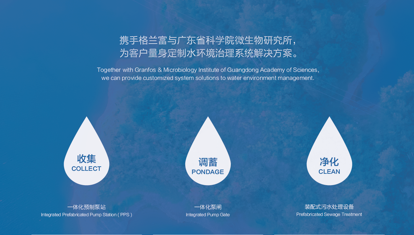公司自主研發(fā)裝配式污水處理設備,針對村鎮(zhèn)污水特點提供分散處理解決方案,使水處理工程高度設備化、集成化,并攜手世界上最大水泵制造商格蘭富,為客戶提供一體化泵站、泵閘等供排水系列產(chǎn)品,從收集源頭到治理末端,我們給水環(huán)境修復的關鍵環(huán)節(jié)-截污治污,提供了高效、靈活、智能的系統(tǒng)解決方案。
