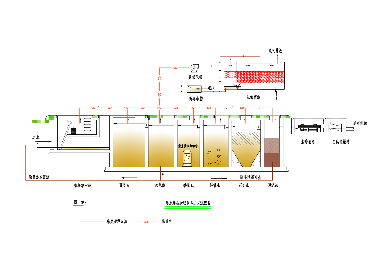 A sludge incubator is added into the traditional activated sludge wastewater treatment process, in which the sludge is used to deodorize odor-inducing components in the sewage in situ. Meanwhile, the sludge of the secondary clarifier is returned to the inlet of the sewage structure, to adsorb and degrade the odor-causing components in the sewage of pretreatment stage, so as to reduce the odor emission concentration in it.